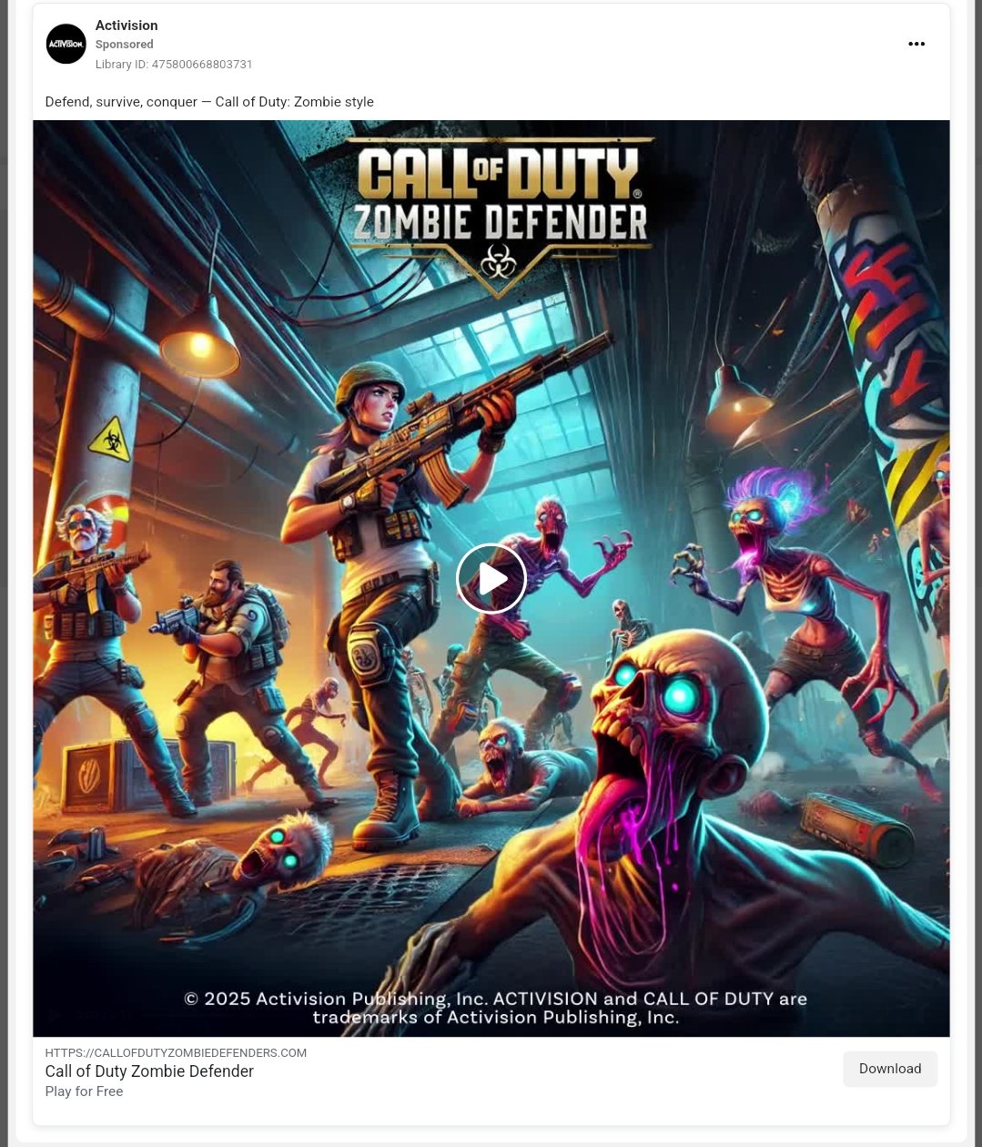 Em causa, e daqueles que nos foi possível encontrar, existem dois jogos de Call of Duty, COD: Sniper e COD: Zombie Defender, um jogo de Crash Bandicoot, chamado Brawl, e um Guitar Hero Mobile. Todos estes títulos parecem ser jogos mobile, mas a verdade é que nenhum existe sequer, apesar das imagens publicadas terem prints de lojas falsas, com reviews totalmente fabricadas por inteligência artificial, como é este caso.