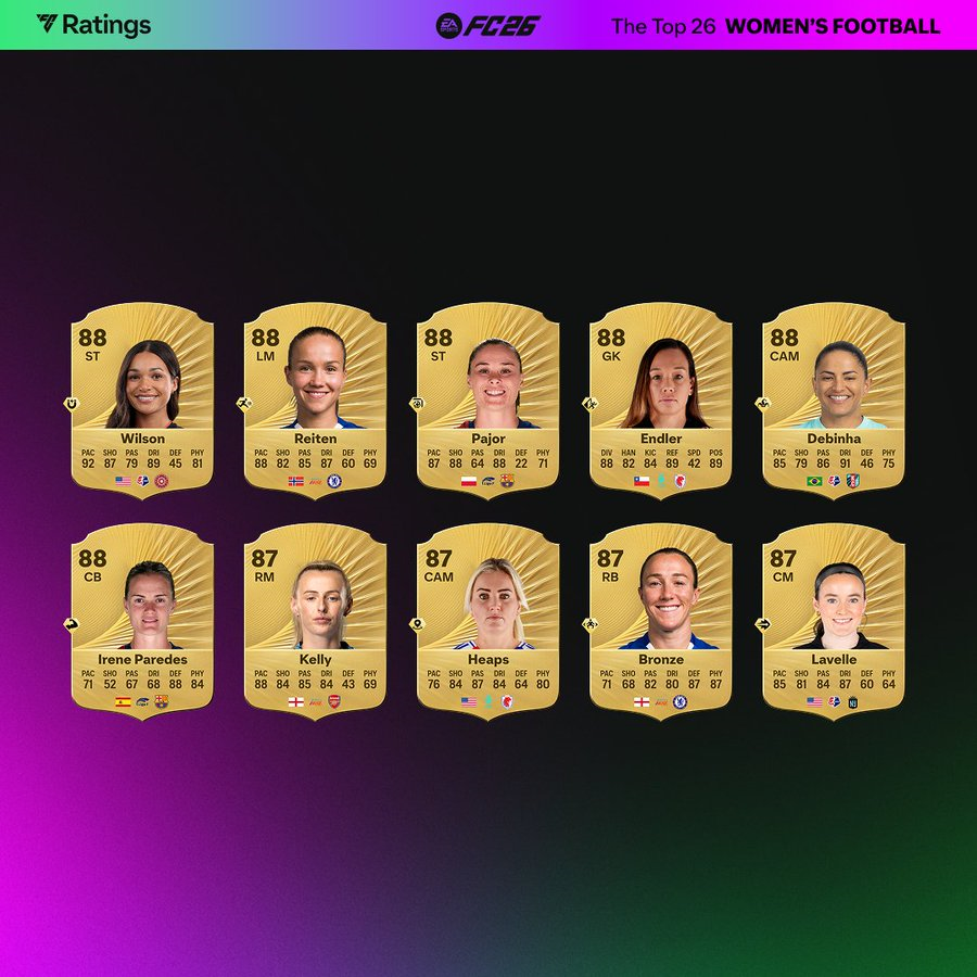 Cada vez mais próximo do lançamento! O EA Sports FC 26 deu a conhecer as 26 cartas com maior overall no futebol masculino e feminino.