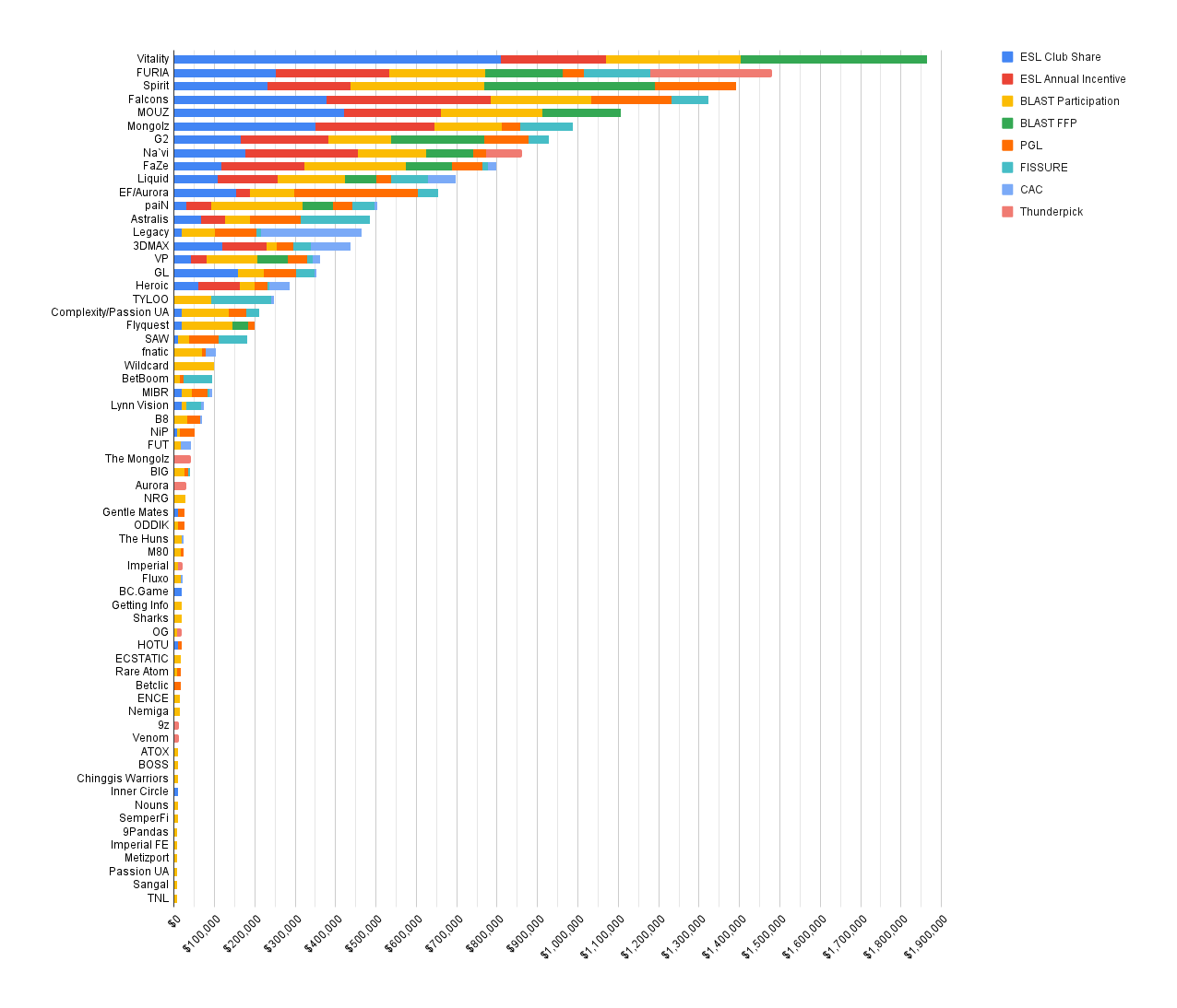 A introdução da “Club Share” via VRS na premiação de torneios mudou o panorama para muitas organizações, como é o caso de SAW que terá amealhado perto de 200 mil dólares com a PGL e FISSURE a representarem grande parte desse bolo.