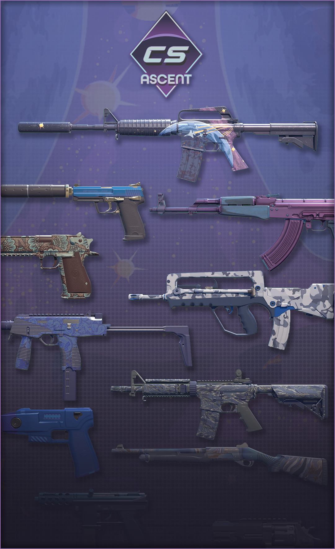 Eis as skins que fazem parte das coleções Ascent, Boreal e Radiant: