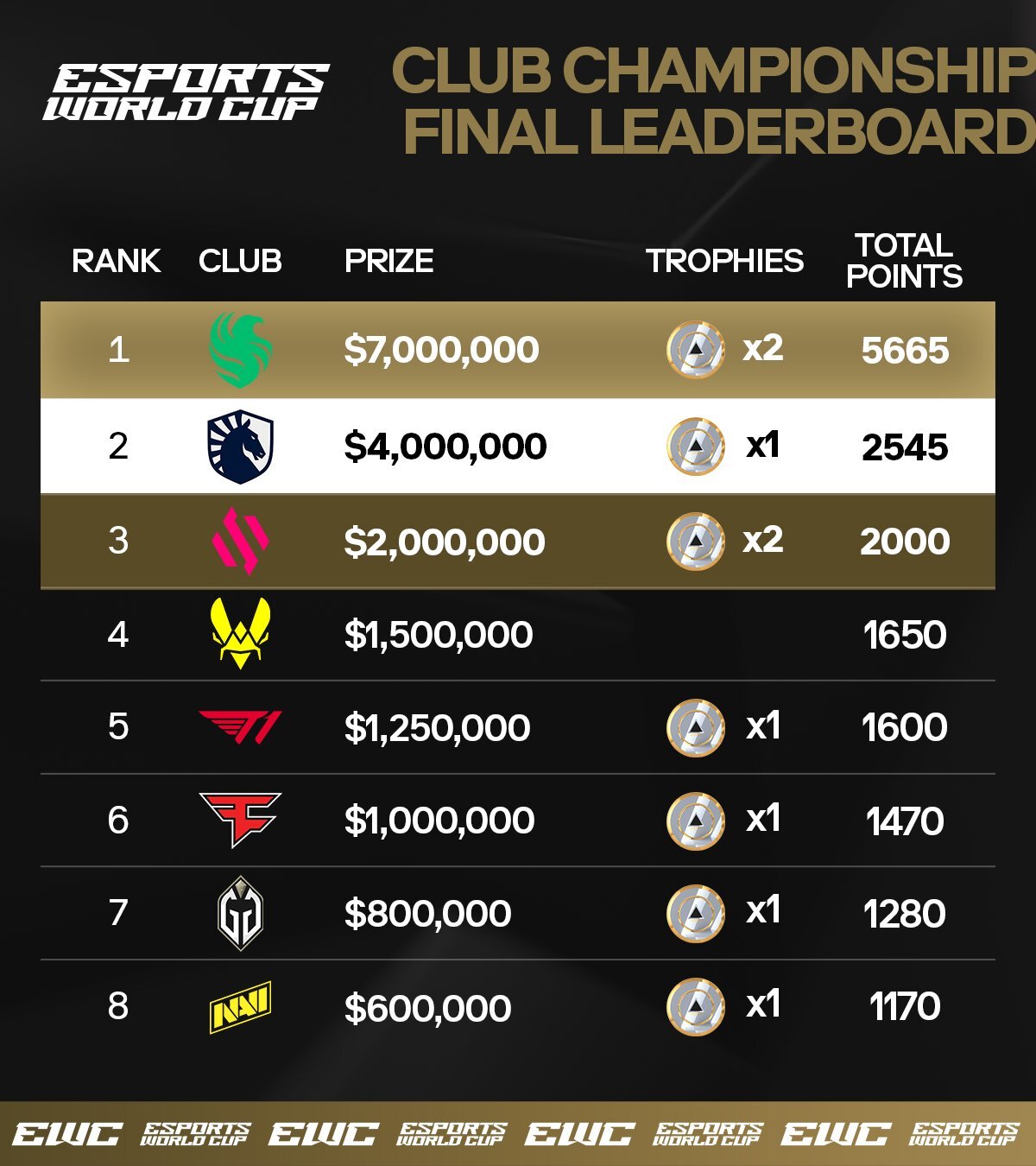 Terminou a 1ª edição da Esports World Cup e a Team Falcons venceu o ranking geral, conquistando o troféu principal do evento.